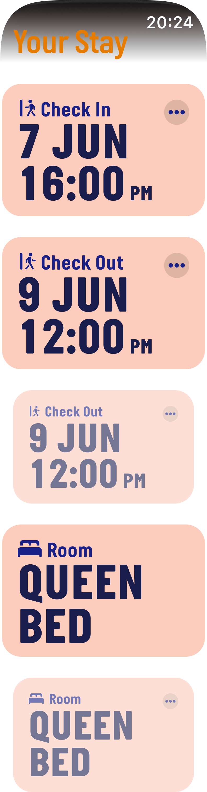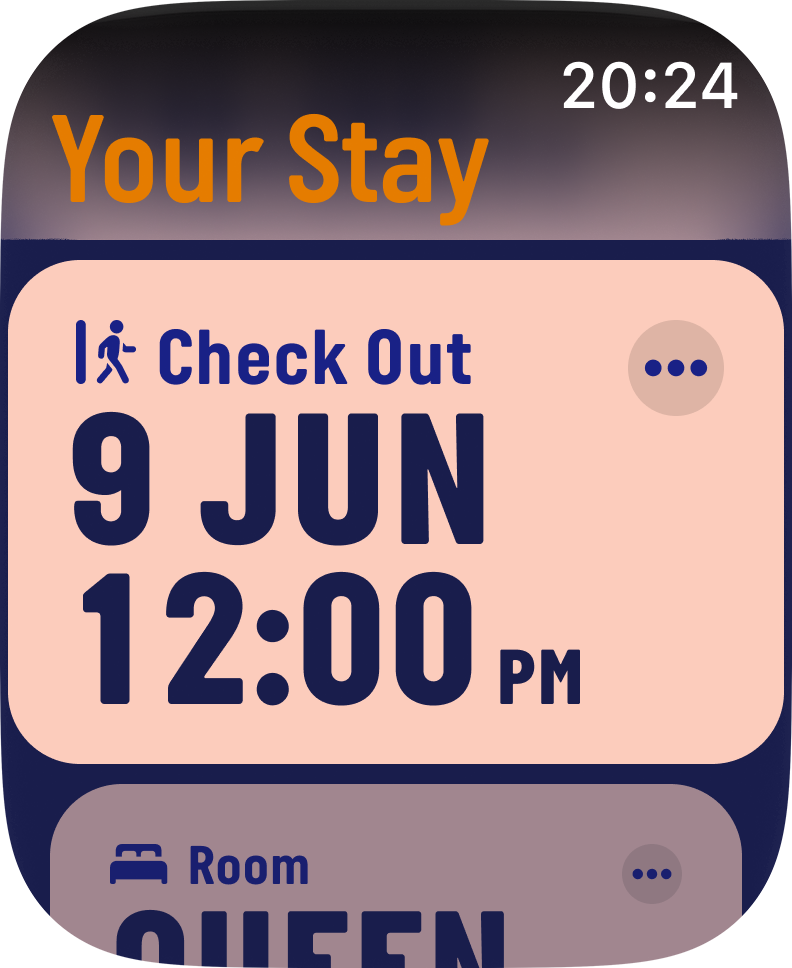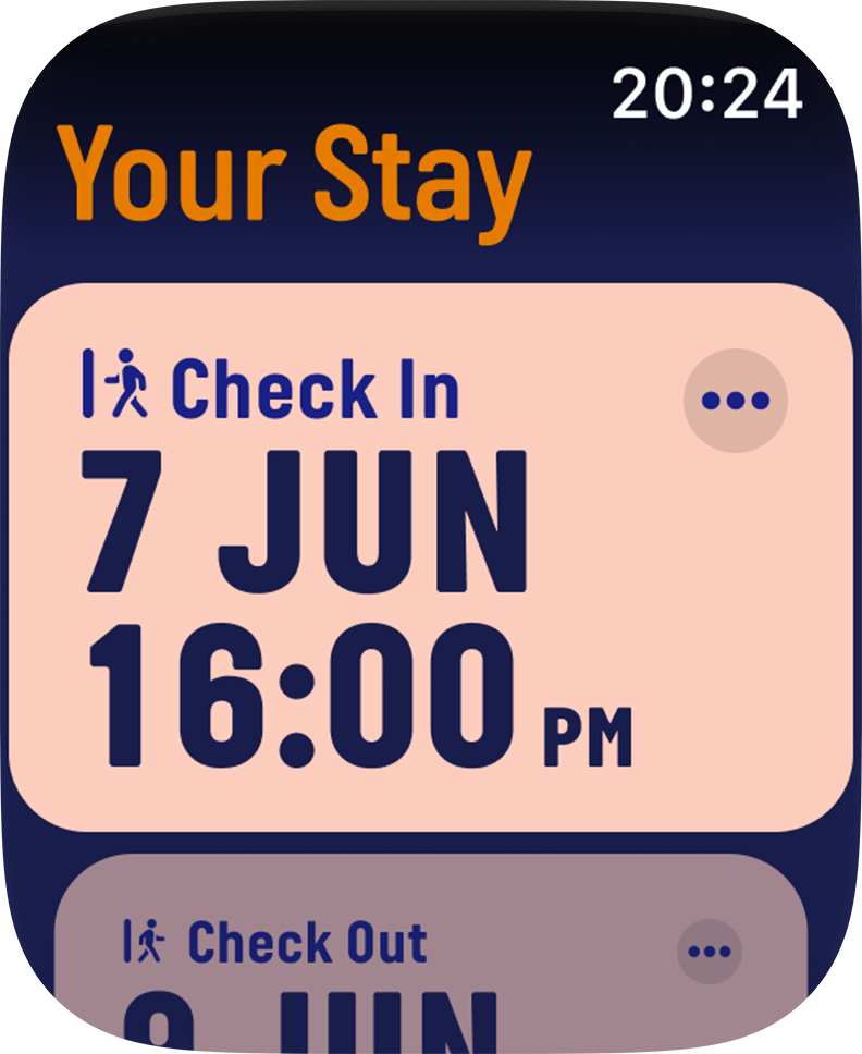 After learning about watchOS design, I went for the stack pattern, by which reservation details are available at a glance, while allowing the user to navigate deeper into each one of them.